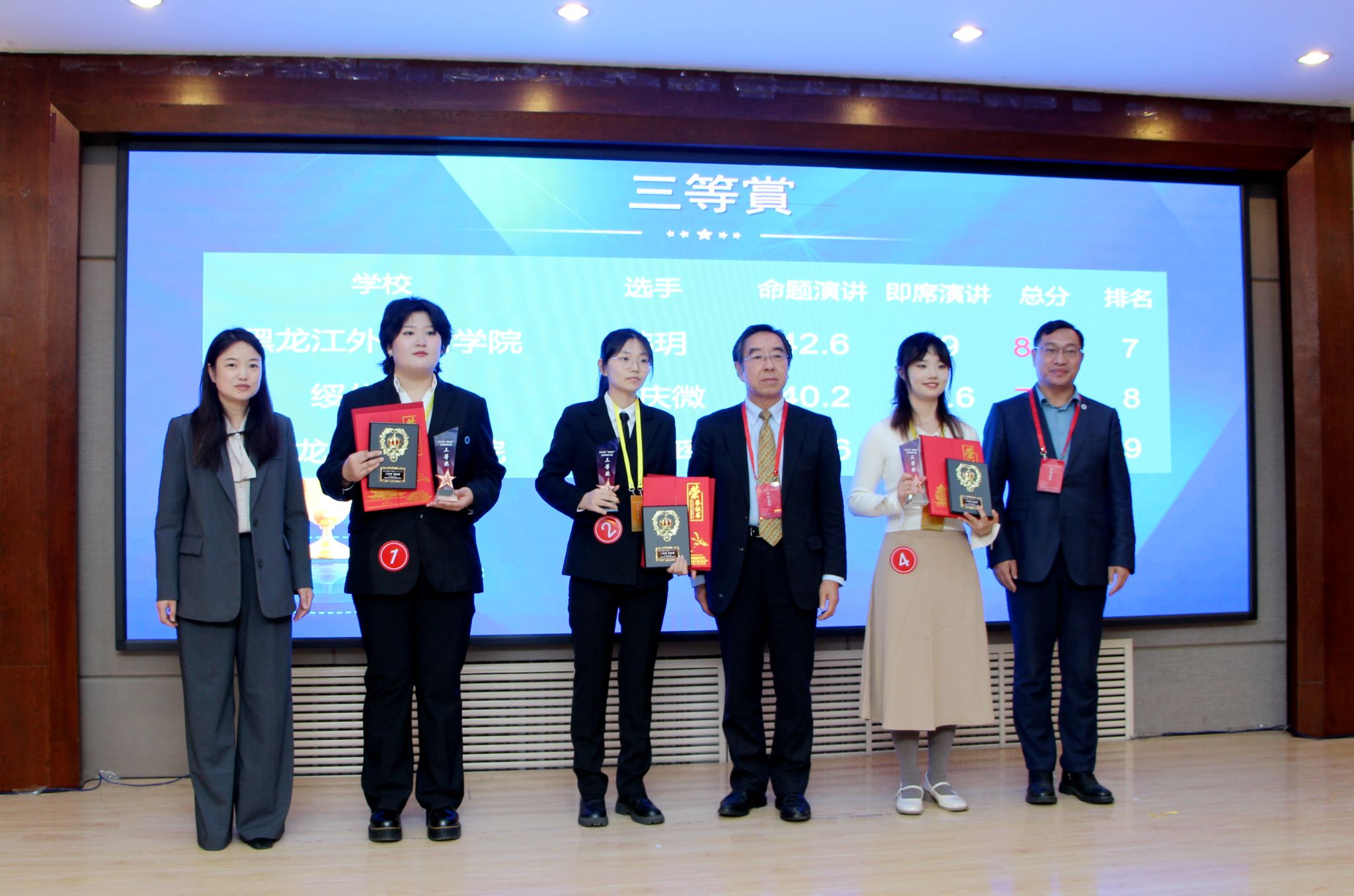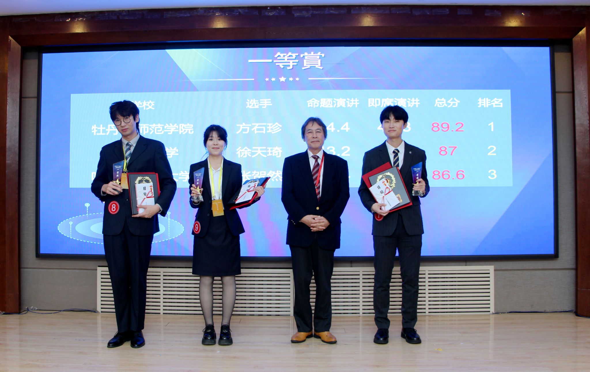 经过激烈的角逐,牡丹江师范学院方石珍、佳木斯大学徐天琦、哈尔滨师范大学张贺然荣获一等奖,东北林业大学王悦如、黑龙江大学王晴、哈尔滨理工大学沙吉达·海特达荣获二等奖,黑龙江外国语学院韩玥、绥化学院康庆微、黑龙江东方学院张益珲荣获三等奖。
